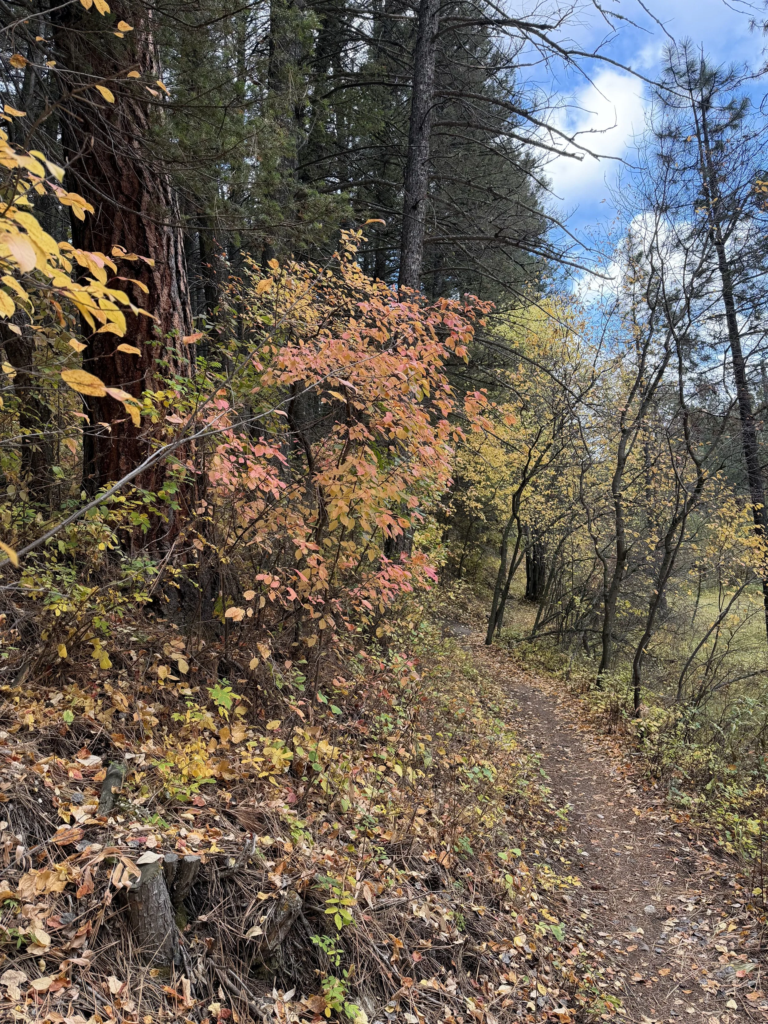 While the entire loop makes for a fun hike, my favorite spot is a little shaded section at the bottom of the trail. As you walk, sounds shift and stir between gently rippling water, whooshing cars, chirping birds, falling pinecones, and fluttering leaves. The west facing slope is covered in a mix of conifers that provide year round structure and mesmerizing dappled light.